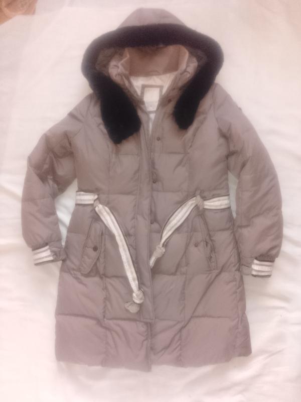 .Пальто женское зимнее с капюшоном,пуховик.Колир-серый.Размер-14.Замеры:Длина-85см,рукав-62см,плече-12см,полуобъем груди-58см,полуобъем талии-50см.Бренд-PRIT.