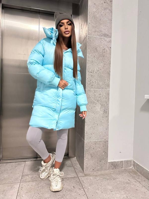 Женский удлиненный длинный пуховик пуфер длинная удлиненная дутая куртка бирюзовый