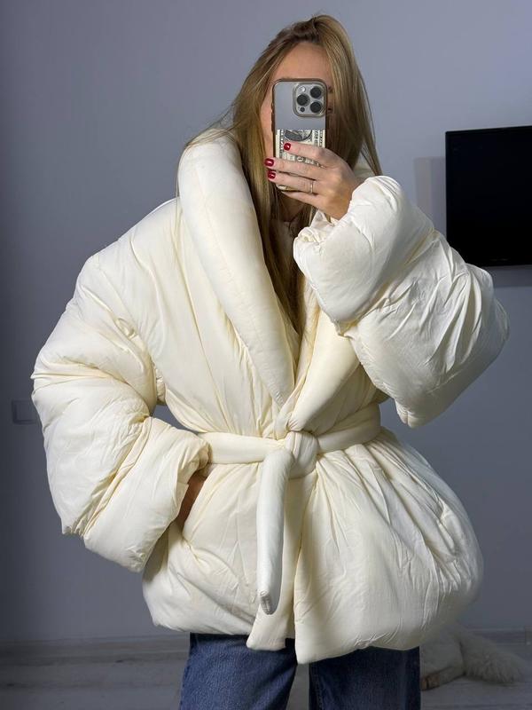 Розкішний обʼємний пуховик 🪡 🤍 - актуальний крій та ідеальна посадка - в комплекті є пояс - утеплення: гіпоалергенний синтипух - терморегуляція, підходить на температуру до -15 - преміальна водонепроникна тканина