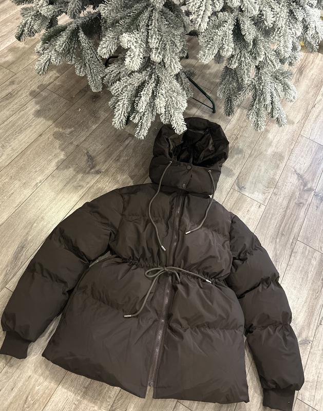 Пуховик ❄️ Дуже стильний)🔥 Капюшон знімається Можна стягувати поясок,а можна не стягувати і буде прямого крою) Колір гіркий шоколад 🍫