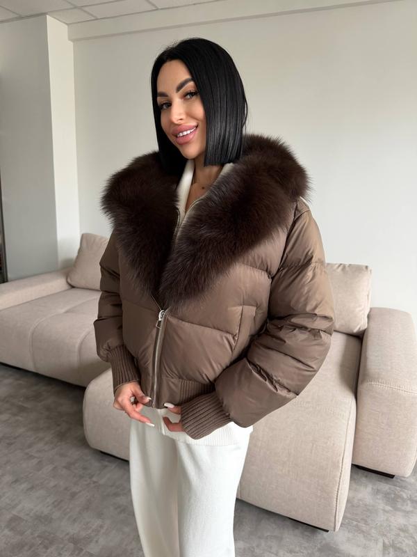 Брендова жіноча куртка пуховик із натуральним хутром макс мара