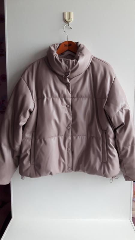 Очень красивый, теплый пуховик, пудрового цвета из экокожи. На змейке с кнопками и трикотажными манжетами. В идеальном состоянии как новый. Размер L. Замеры: Длина по спинке 60 снизу есть затяжки, ПОГ 60 идеально на грудь ПО 55, плечи приспущены 52, рукав 56