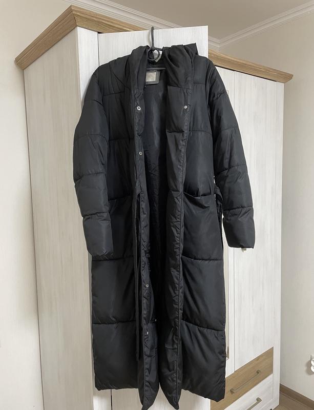 Чорна зимова куртка, вказаний розмір ХЛ, але підійде спокійно на М, я носила зі своїм С розміром при рості 170 Довга та тепла, є дефект у вигляді двох відірваних кнопок які можна відреставрувати Та заду знизу зашитий шматочок