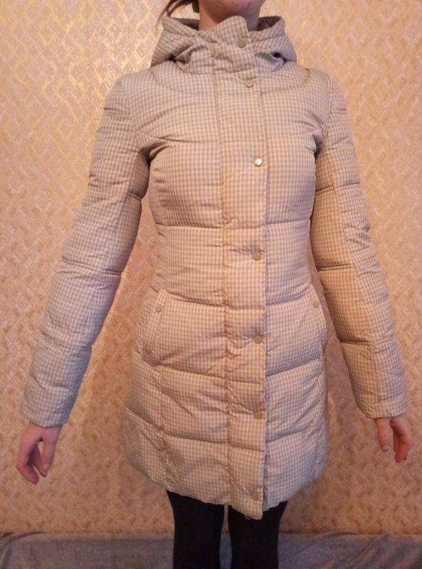 теплий пуховик на синтепуху, розмір 40- 42 на худеньку дівчинку, верхня тканина водовідштовхуюча, капюшон не відстібається. Одягався декілька разів, після хімчистки.