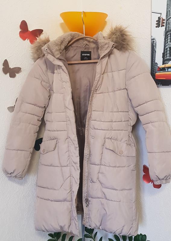 Зимний пуховик на синтепоне,очень теплый. длина 86,рукав 61.ПОТ 43 и сзади резинка- так что еще тянется в талии на пару см.Мех на капюшоне отстегивается. Пуховик без дефектов,в иделаьном состоянии.