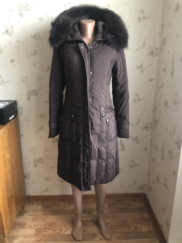 Пуховик, натуральный импортный пуховик, коричневый пуховик с мехом песца
