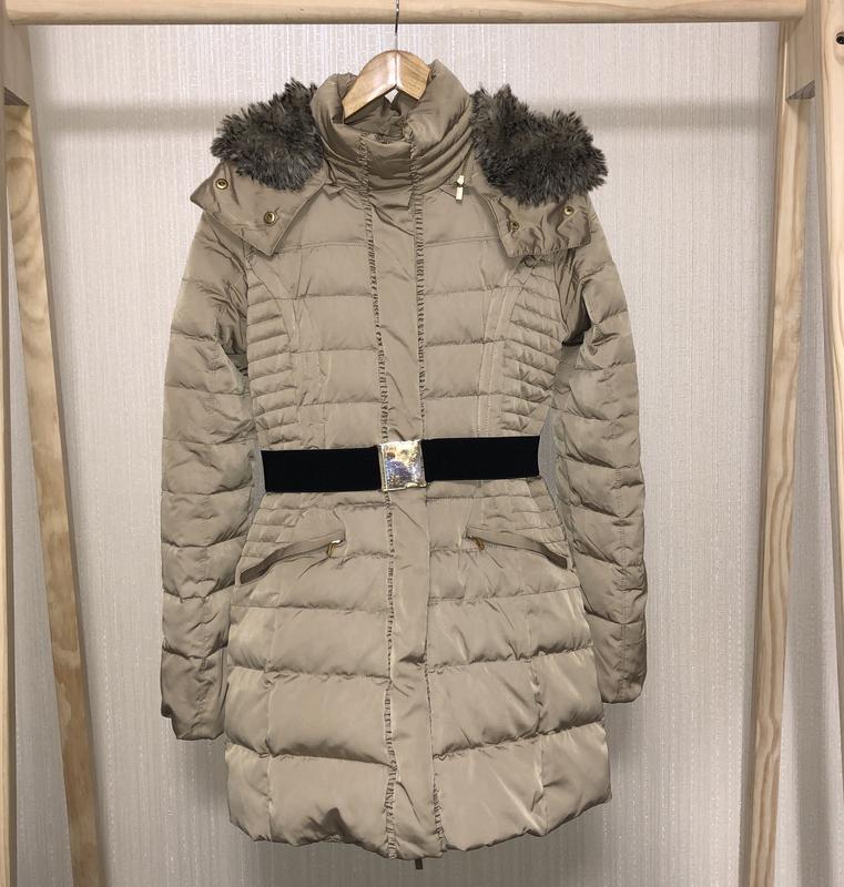 Отличный тёплый пуховик {пух/перо} под поясок с капюшоном