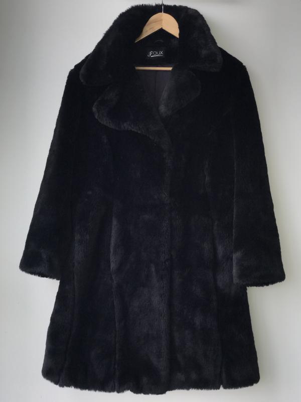 Чорна шуба, майже нова, в гарному стані, розмір МЛ, Плечі 46 см Довжина 100 см Рукав 59 Обєм 100