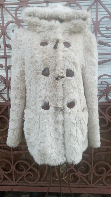 Полу о.г.- 57; полу о.т.-58; полу о.с.-66; ширина плеч -45; длина рукава -63; полу объем бицепс -18; длина перед -73. Состояние новой вещи, но без ярлыка. Мех искусственный, приятный на ощупь, мягкий.