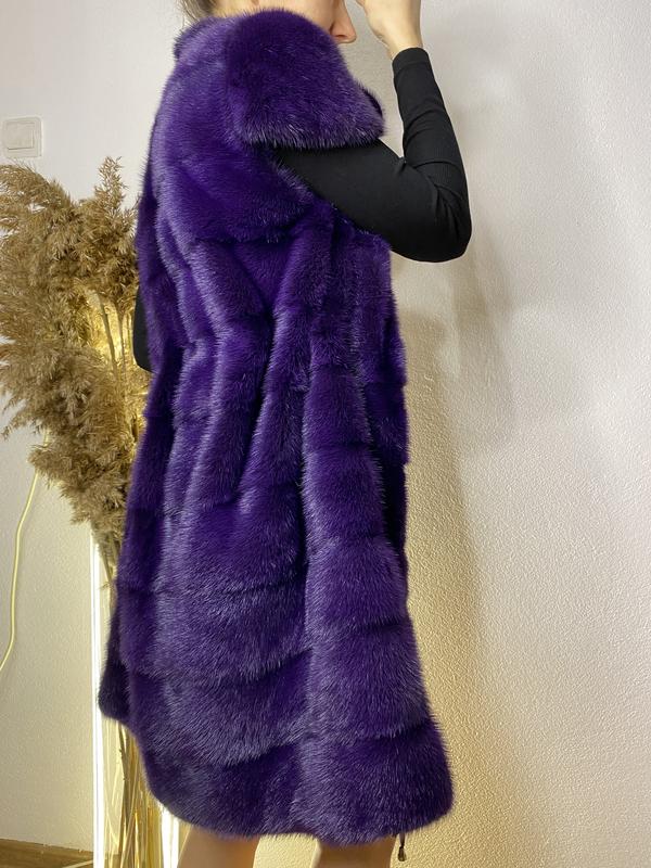 Жилет із справжнього хутра ( норка ) По плечах 36 см По грудях 50 см Довжина виробу 90 см ( можна зробити коротше на 20 см є блискітка по низу )