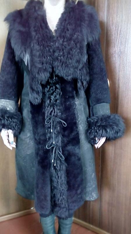 Дубленка комбинированная мех-замша с роскошным воротником