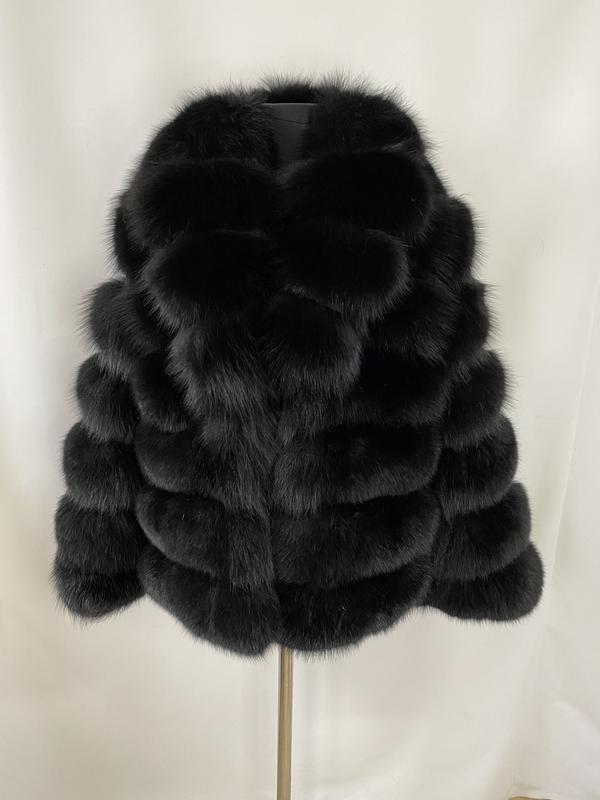 Шикарная женская песцовая чёрная шуба, финский мех песца, английский ворот, длина 65 см, 4...