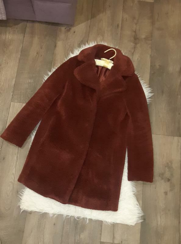 Шубка тедди р.S, длина 90см, плечи 42см, ширина 50см, рукав от плеча 64см, на подкладе есть26анс на посоединением фото, разводы на подкладе в носке вообще не видны.