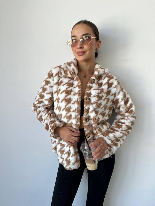 Шубка тедди в принт гусиная лапка туречка 🇹🇷