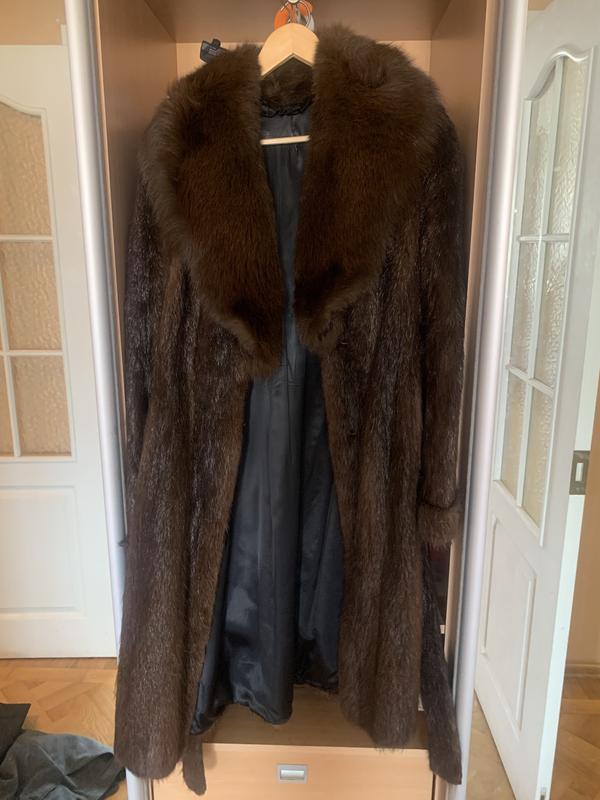 Шуба из полированной нутрии. Воротник из песца.