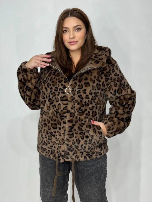 Стильная шубка укороченная с капюшоном в трендовом леопардовом принте мех. Размеры: (M)42-44, (L)44-46 Ткань: эко леопард, эко кожа Цвета: бежевый, белый