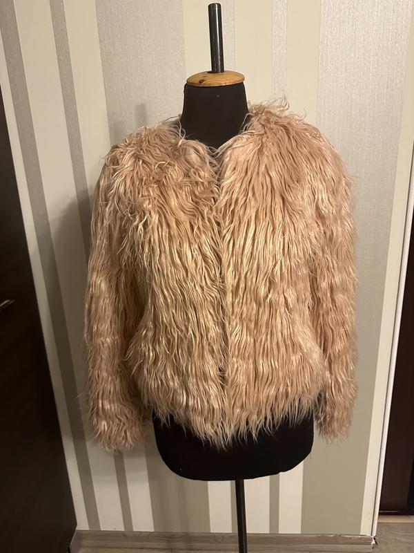 Классная шубка персикового цвета с длинным ворсом без застежки. Без карманов. Размер 8, на манекене S. Без дефектов