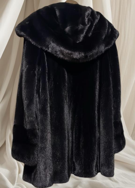 Размер 48-54 Шуба норочная black glama с капюшоном Плюшева шовковиста норочка Крой манто Капюшон кобра Легкая и мягкая Длина 90 см Пог 61 см Плечи 44 см Рукав 70 см Поб 72 см