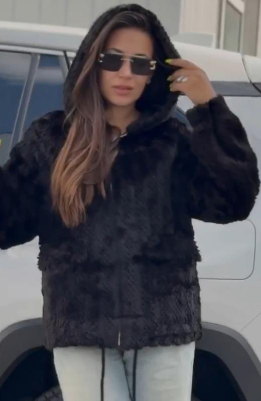 Женский полушубок автоледи с капюшоном на молнии под норик.
