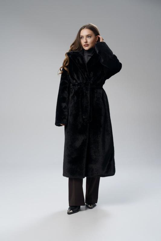 Зимняя длинная шуба из меха под нотку до -25° черная, женская удлиненная шуба на зиму с по...