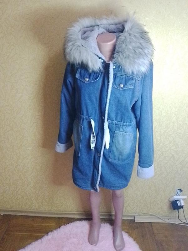 Куртка джинсова с мехом искусственным в хорошем состоянии рукав 69 грудь 102