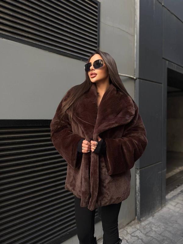Крута шубка,на підкладці,застібається на ґудзик 💖Тканина мутон Модель - 092 Розміри - 42-48 onesize Кольори - шоколад,чорний,молоко (Р842)
