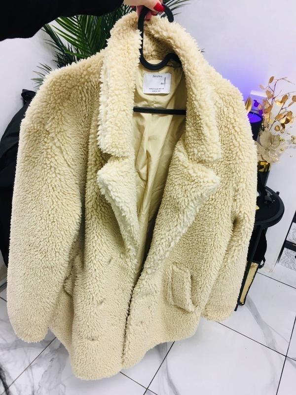 Актуальная песочная оверсайз шубка тедди от bershka Крой объёмный оверсайз, стильный тедди мех, на рост 165-167 будет выше колена, на гладкой подкладке. Под свитер можно носить зимой на минус. Состояние идеальное, актуальная брендовая вещь ✨ Отправка 1-2 дня с момента оплаты заказа, удобным для вас способом доставки ☺️ Полуобхват груди 60 Длина от плеча 80 Рукав 64 М/л