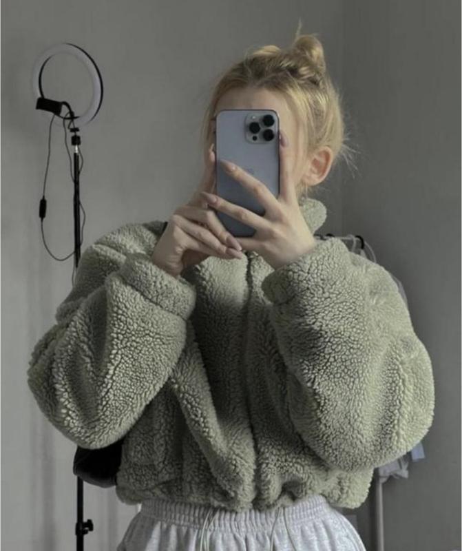 Укорочена шубка Тедді фасону оверсайз. Внизу на затяжках Розмір М