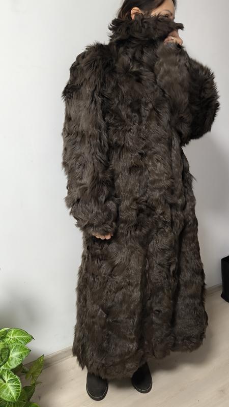 натуральная шуба есть не большие проплешина ,, но их не видно они спрятаны под длинным мехом)