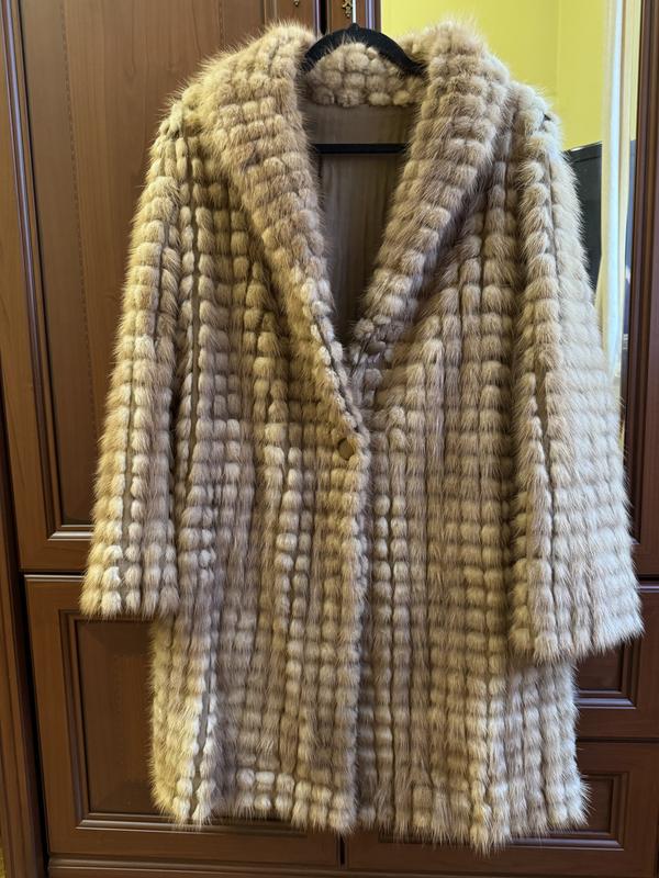Шуба з кусків норки, легка, є незначні дефекти. Прямий крій, буде на с, невелику м
