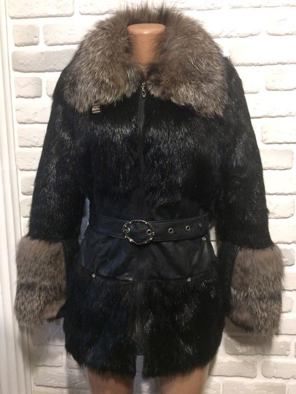 Шуба,шубка,полушубок! нутрия,как норка+чернобурка+кожа! пояс!