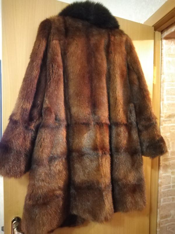 Эффектная шубка трапеция из сурка, воротник из песца, 46-48рр