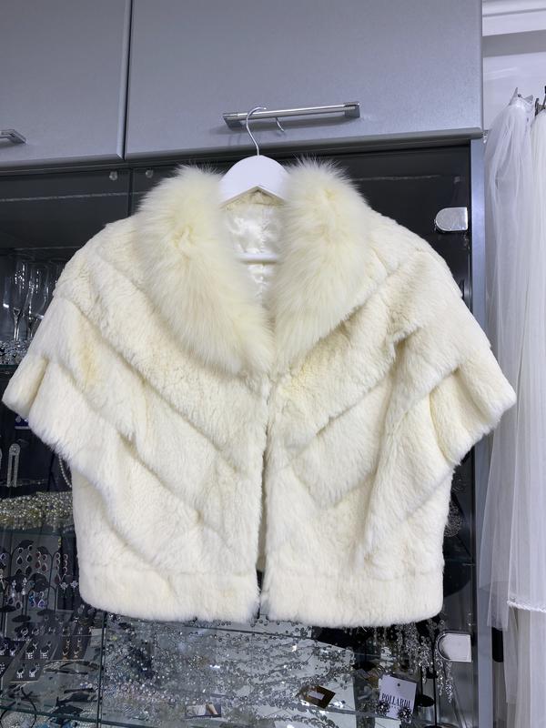 Шубка, з кролика Комірець - песець Розмір універсальний (S/M/L) Висота виробу по спинці 46 см Ширина спинки по плечах 44 см Рукав короткий реглан Дуже комфортна