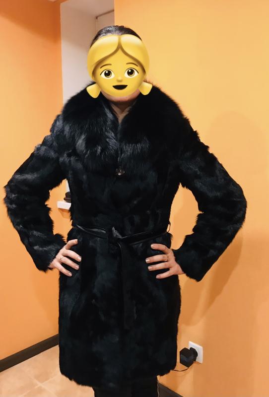 Чудова шубка, чорного кольору, гарно блестить і переливається на сонці. Комір - песець, низ - стрижений козлик. Є поясок та кармани. В ідеальному стані. Розмір - L. Довжина по спинці (з коміром) - 100 см, ширина - 47 см, довжина рукава ( від плеча) - 65 см. Продаю через те що стала затісна.