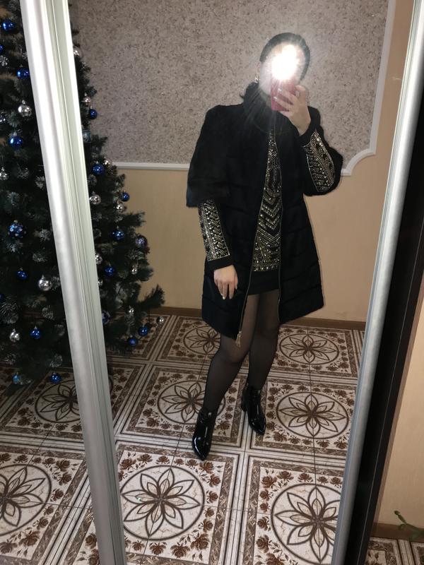 Черная шуба из стержневого бобра Воротник стойка из норки темно-коричневого цвета Рукав трансформер