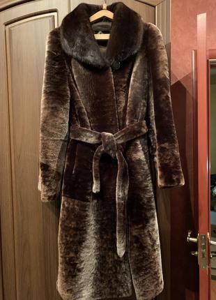 Мутоновая шуба с норковым воротником,стан новой вещи.Оделала несколько раз. Замеры: рукав 70, плечи 40, грудь 50, длина 110. Размер 48-50