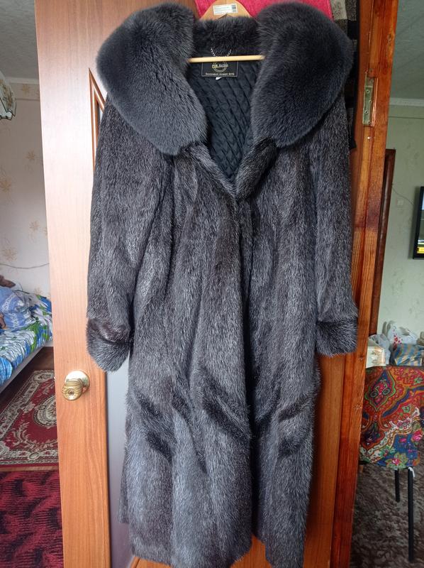 Шуба из нутрии, ворот из песца. 56 размер. манжеты можно откатить. длина рукава от плеча 72; от горловины длина рукава 86; длина изделия 132; от плеча до плеча 44; обхват груди 116.