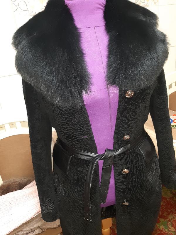 шуба из стриженного мутона , воротник из чернобурки, замеры на фото