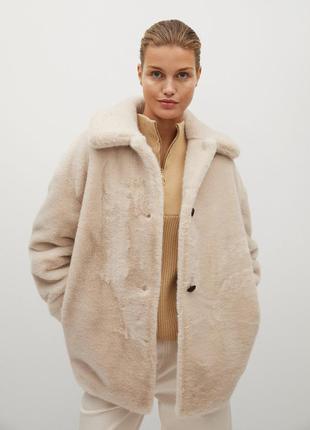 Меховая ткань . Средняя модель . Отложной воротник . Спущенный шов на плечах . Длинные рукава . Манжеты на пуговицах . Застежка на пуговицы спереди . Внутренняя подкладка .
