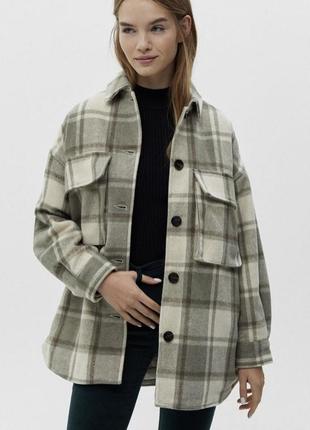 Сорочка в клітинку на підкладці PULL&BEAR Сіро-молочного кольору Розмір S Довжина 77 / ПОГ 56 / рукав від горла 75 Стан нової, одягнена пару разів.