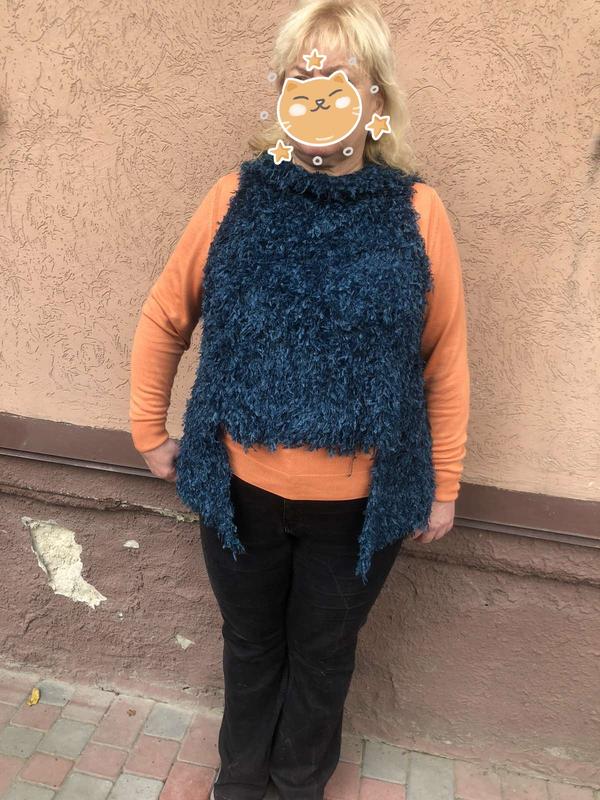 Интересный жилет, комбинация пальт овечьей ткани и шелковистой "травки"Очень красивый цвет морской волны, ближний на последнем фото.Груды 132,бедна 160,длина спереди 56,сзада 88 см