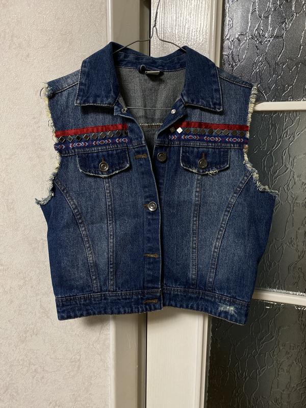 Новая джинсовая безрукавка выполнена из настоящего джинса Плечи 36 Груди 46 Длина 43