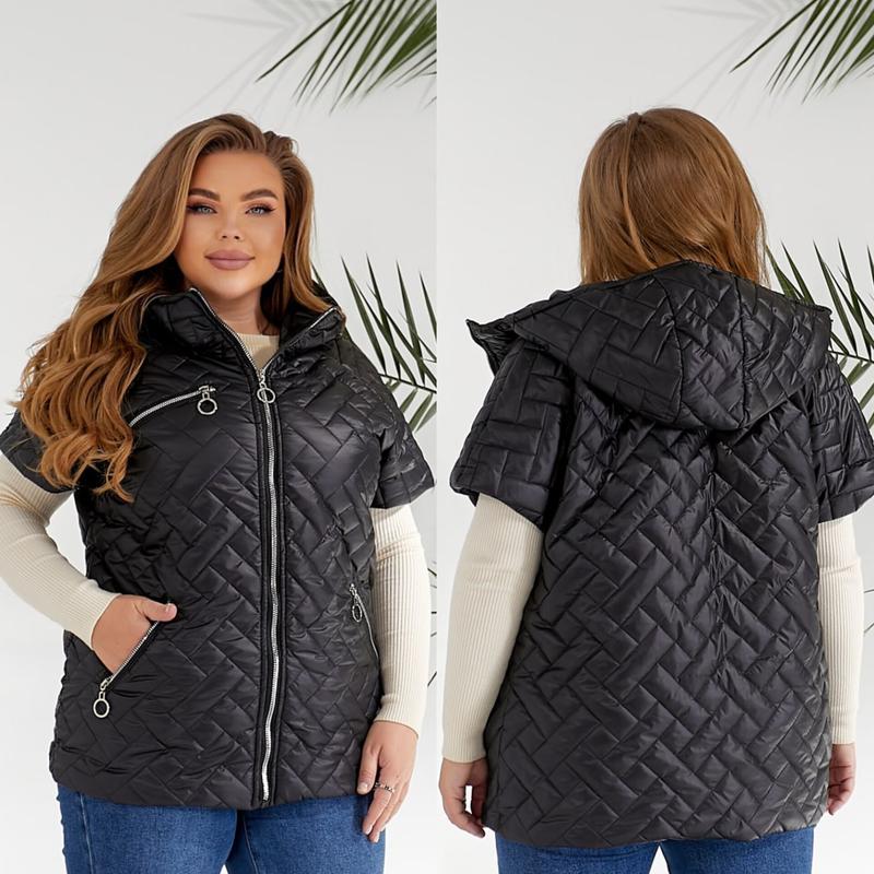 Стильная стеганая жилетка с рукавом🌞🌿 Отлично подойдет в качестве куртки для автоледи👍 ▪️Модель свободная, с капюшоном и карманами на молниях✔️ ▪️Рукава-реглан, короткие ▪️Застегивается на молнию⚡ Мод 0868ЛД Размеры: 48-50, 52-54, 56-58 💵Цена: 1075 грн Размеры: 60-62, 64-66, 68-70 💵Цена: 1185 грн Ткань: плащевка Лаке+ силикон 100+ подклад саржа 250 Цвета: черный, белый, оливка, голубой 📌Замеры: Р-ри: 48-50; 52-54; 56-58; 60-62; 64-66; 68-70 **********, 144, 152, 160см **********, 134, 142, 150см **********, 142, 150, 158см Длина изделия-68, 68, 69, 70, 70, 71см Наложенный платеж по перед оплате 200 грн