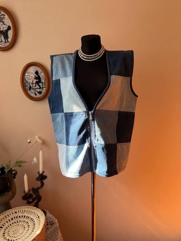 Апсайклінг жилетка з вінтажного джинсу деніму