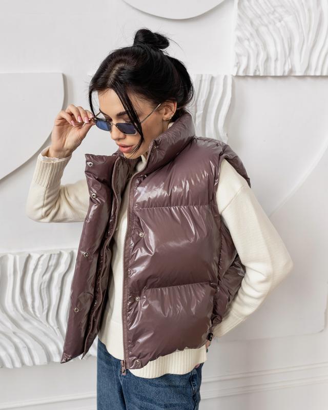 Теплый жилет на биопухе из блестящей плащевки монклер ниагара, женский жилет безрукавка на...
