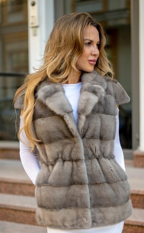 Шикарный жилет из натурального меха норки. Импортный мех класса люкс. длина 60 см (может быть любой) размер - по индивидуальным параметрам (с 48 размера цена выше) цвет - серый(может быть любой)
