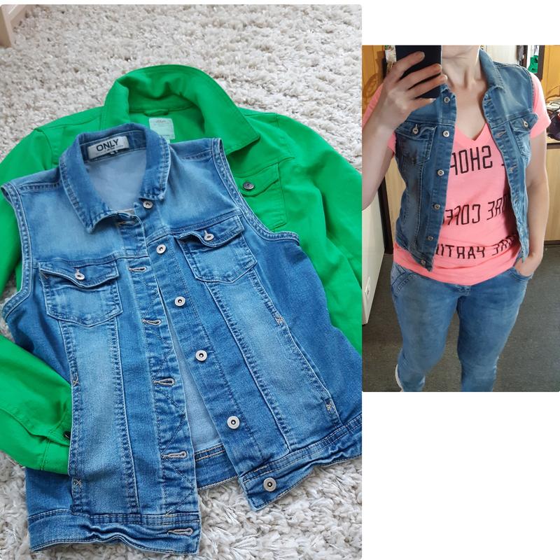 Стильная джинсовая жилетка, есть кармашки , ткань эластичная, размер указан 36, на фото на 40 и рост 170. Замеры ПОГ 44+, ПОТ 38+, ПОБ 42+, длина 54