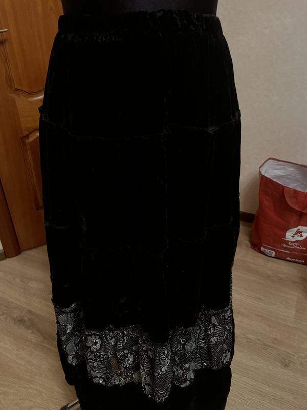 Оксамитова спідниця з вставкою мереживо.Дуже нарядна і якісна,На резинці.підійде на розмір48-52,довжина85 см