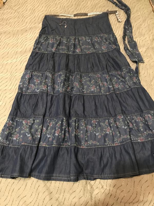 Юбка из тонкого джинса, очень красивая, но новая, без бирки,комби, с поясом.Длина 98,талия 42.