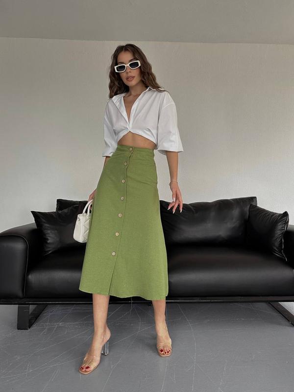 ❤️🔥СПІДНИЦЯ ⠀ 💸Ціна : 580 грн Тканина: льон Розмір: 42-44, 46-48 Колір: оранж, олива, чорний, рожевий ‼️Відправка товару: ПН., СР., СУБ.
